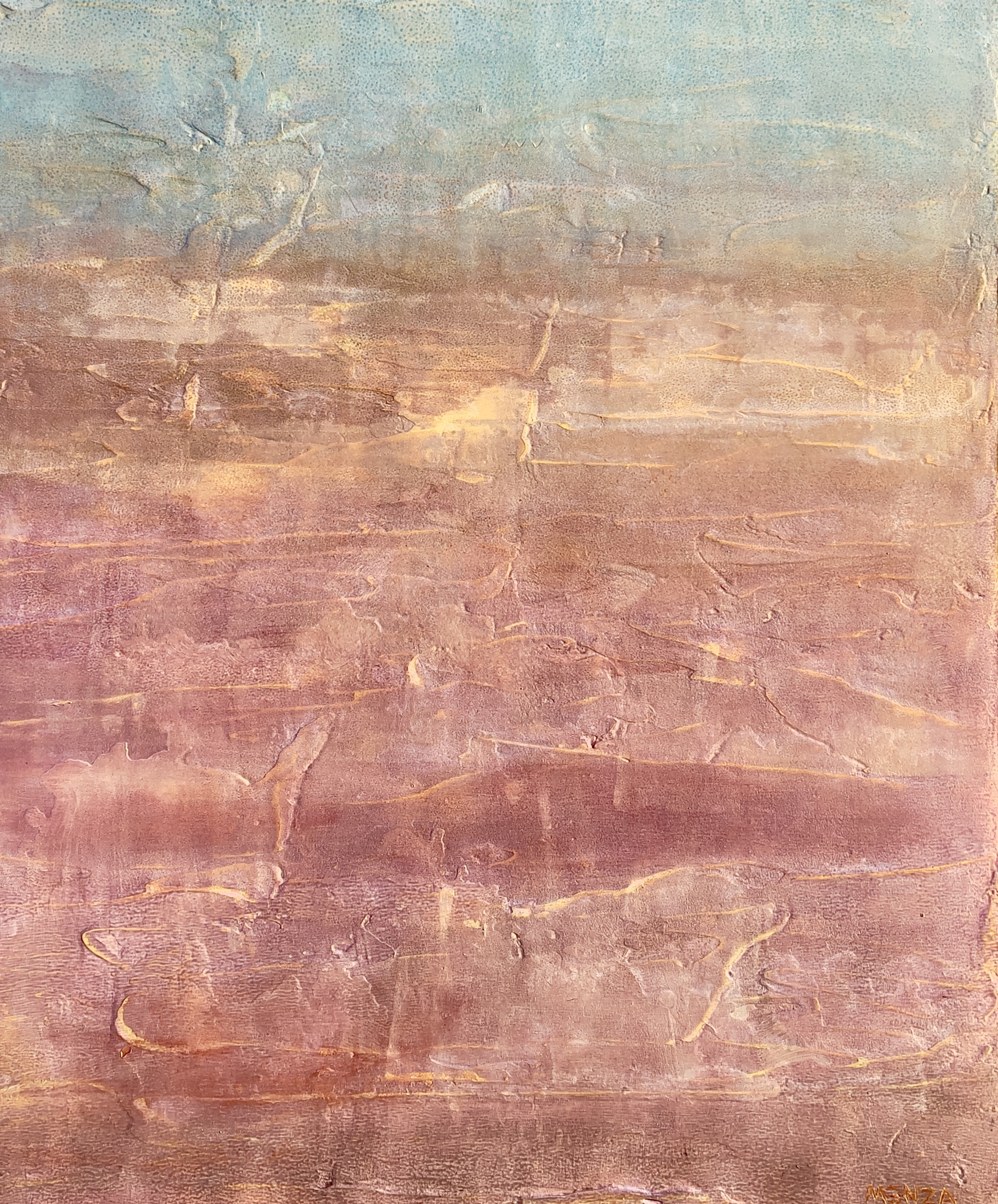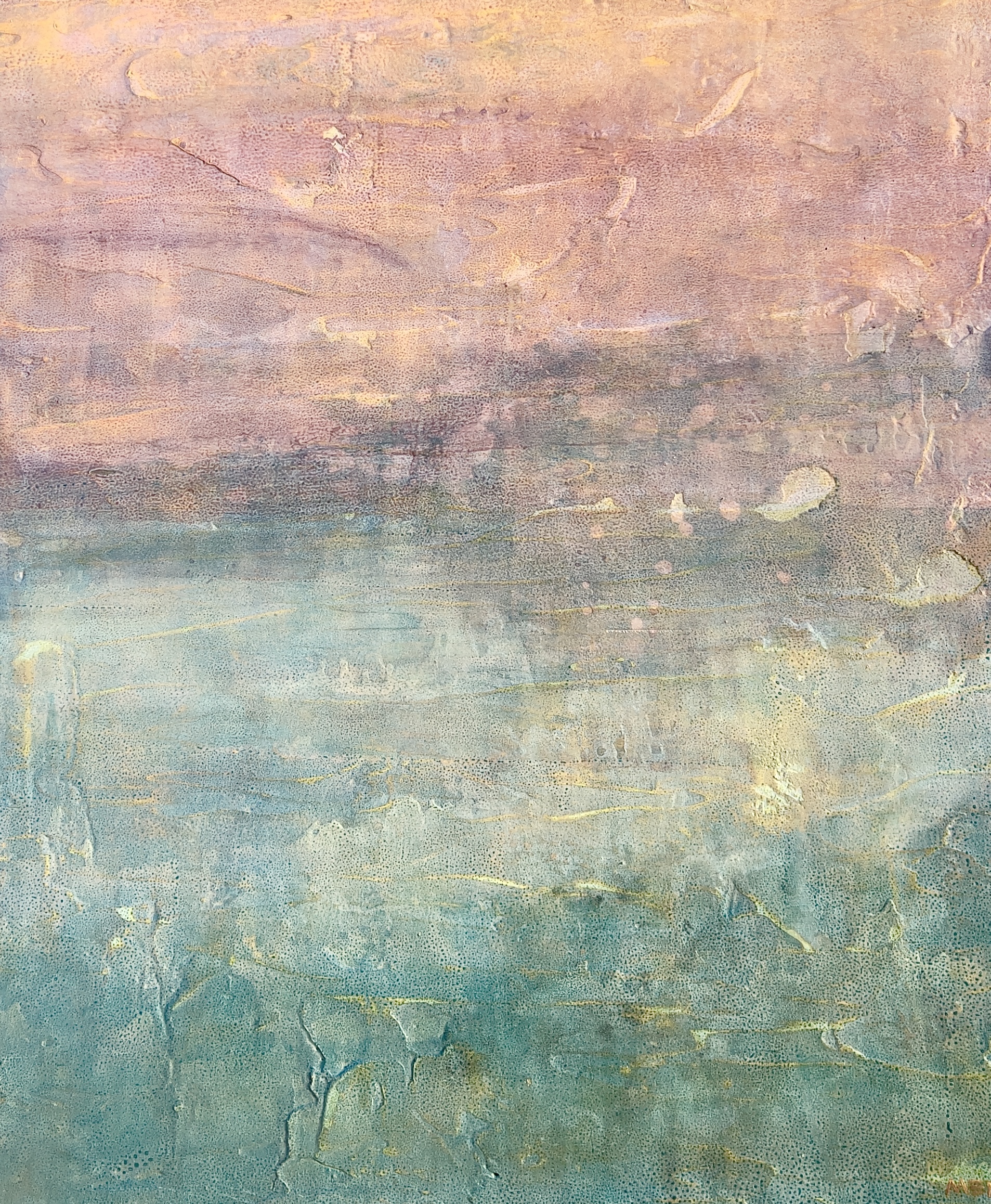 Mica, glass beads, ink, acrylic pigment on aluminum