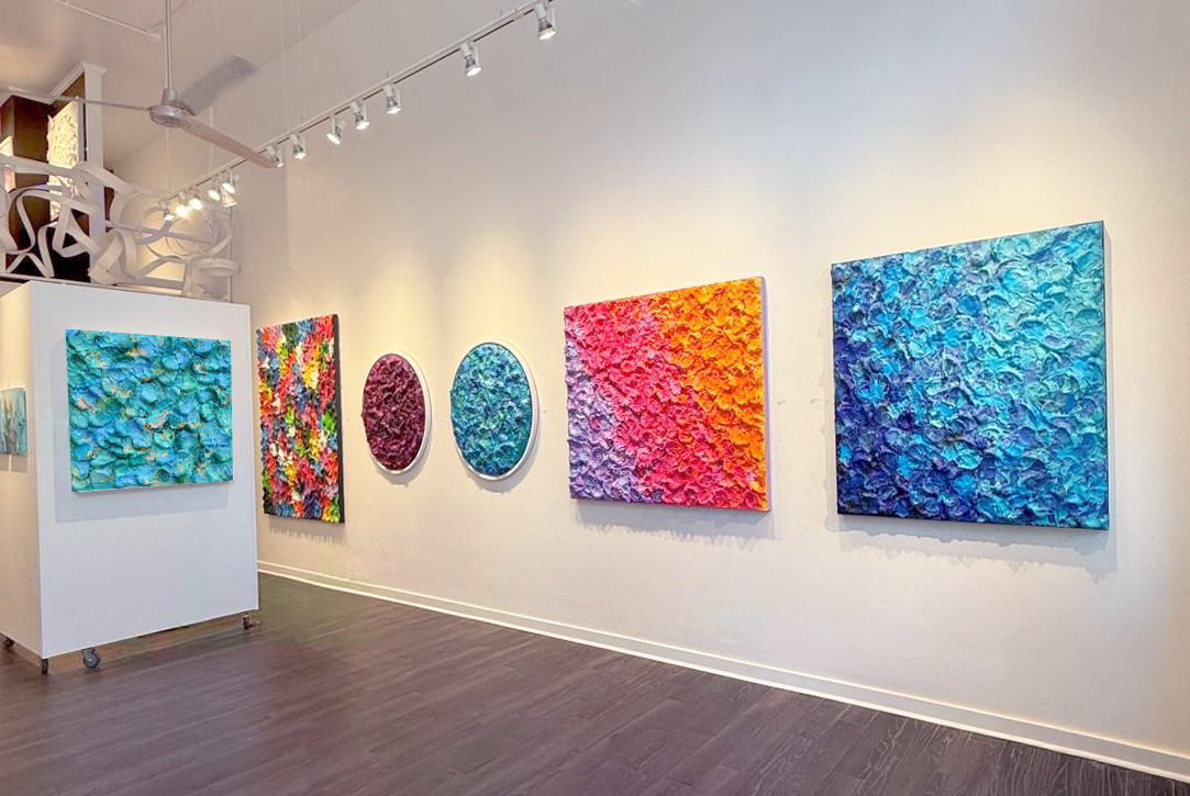 Each piece I create is an archaeological record of sorts, with layers that interact and reveal themselves in unexpected ways, inviting viewers to explore the topology of emotion and experience. The physicality of my process is essential to the work’s meaning. By stacking and combining materials, I build surfaces that are simultaneously chaotic and controlled, much like the internal landscapes we all navigate. The resulting pieces are not just visual experiences but textural narratives that speak to the complexity of human emotion and the beauty that can emerge from embracing rather than simplifying that complexity.