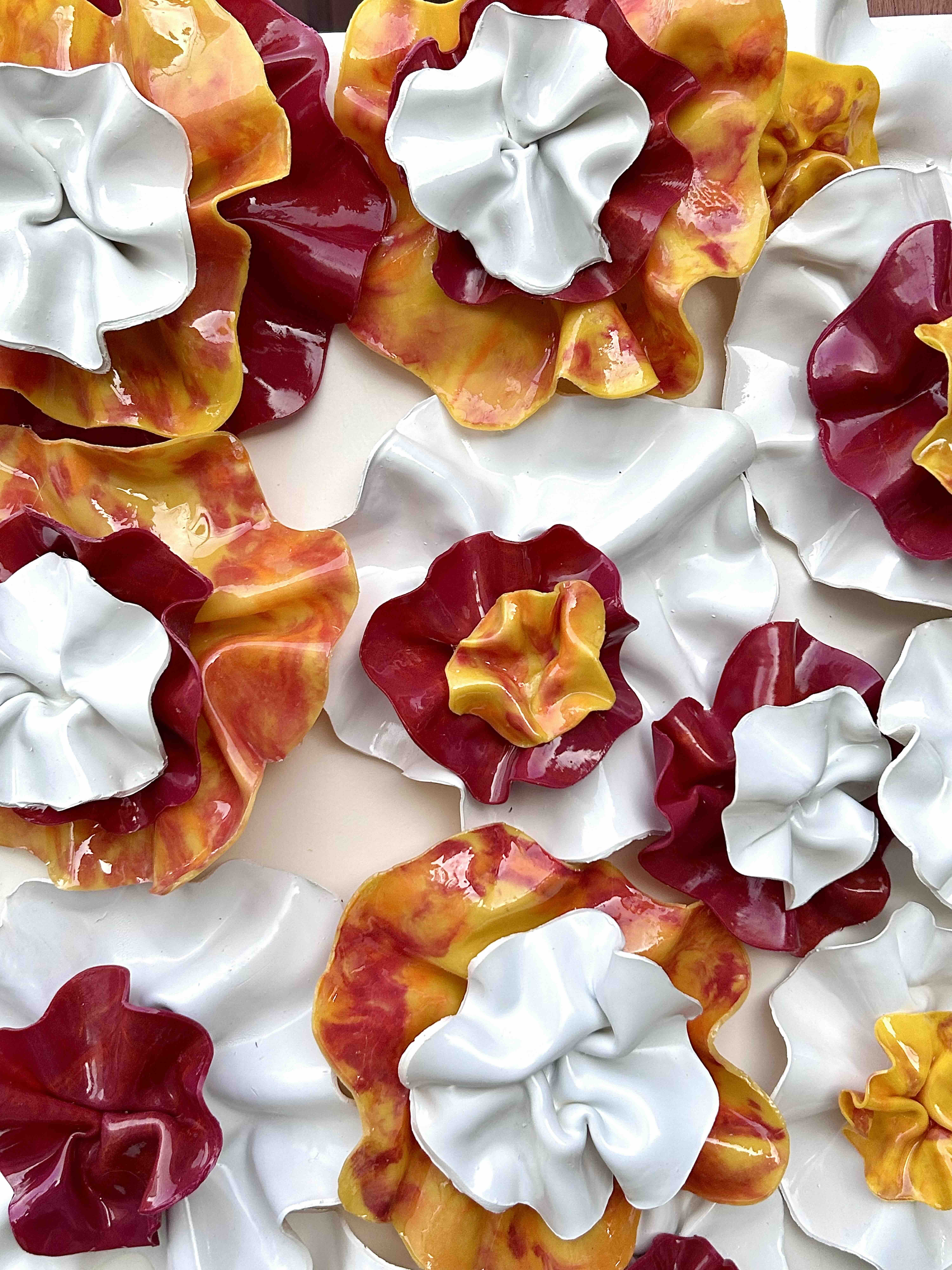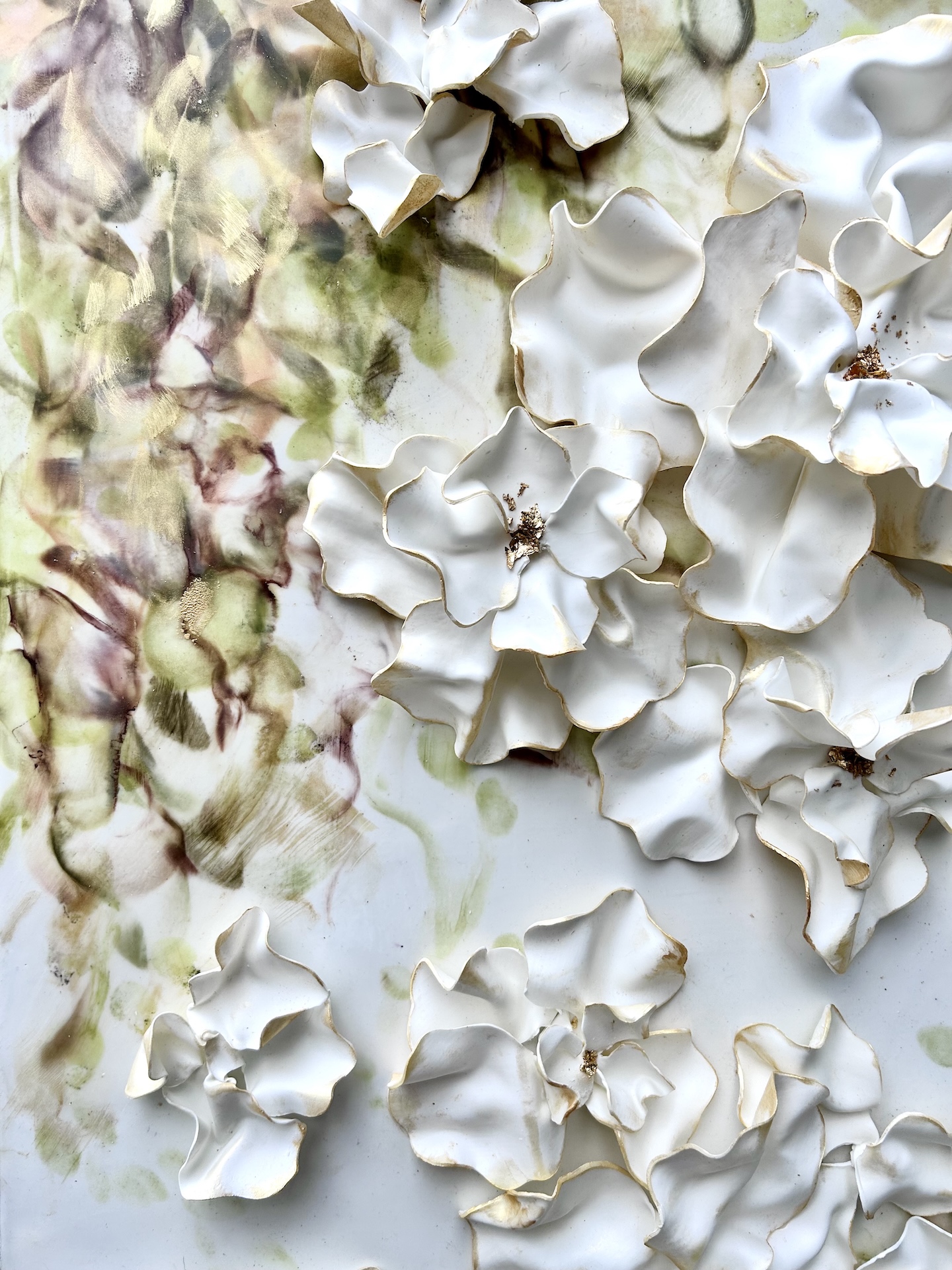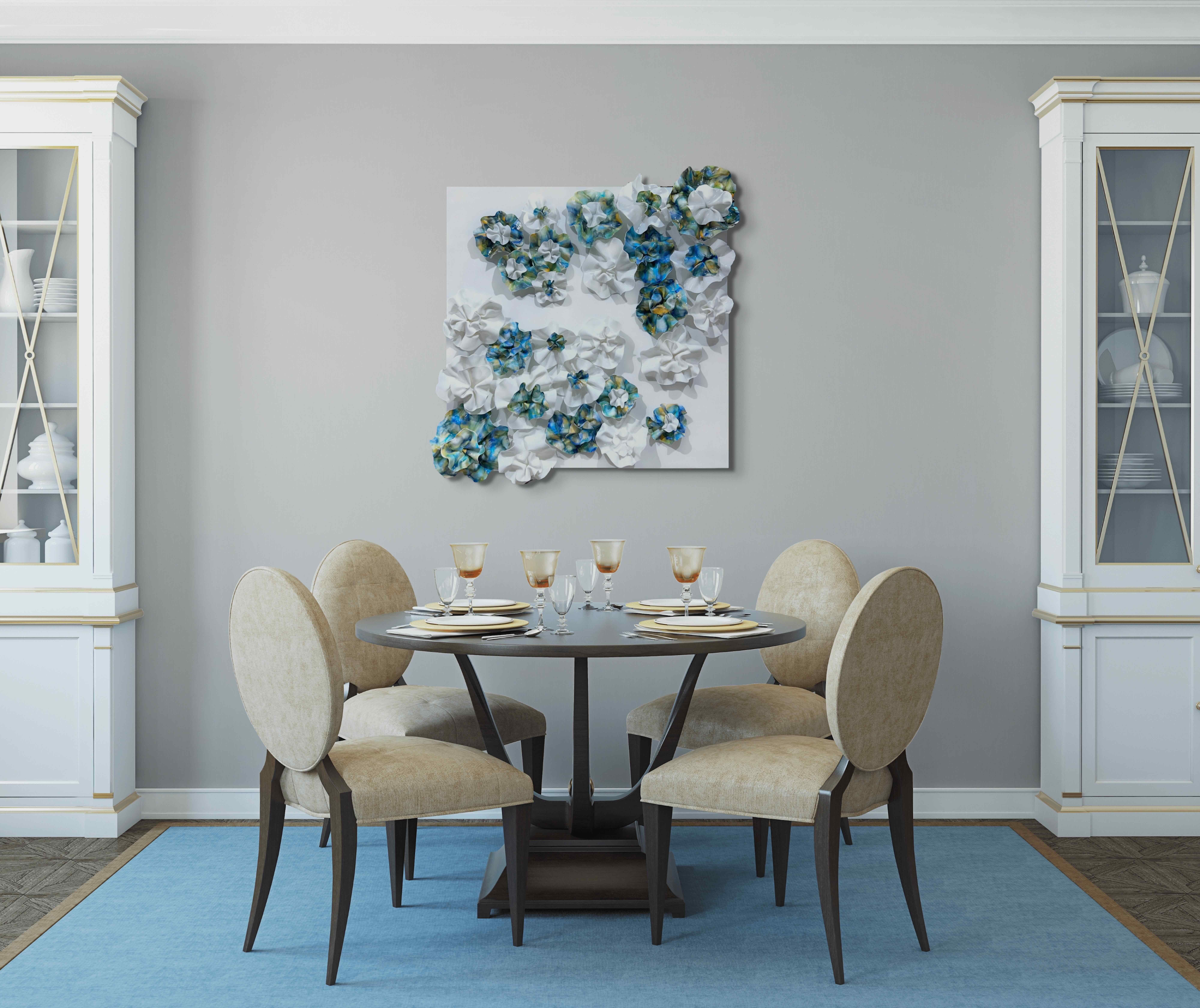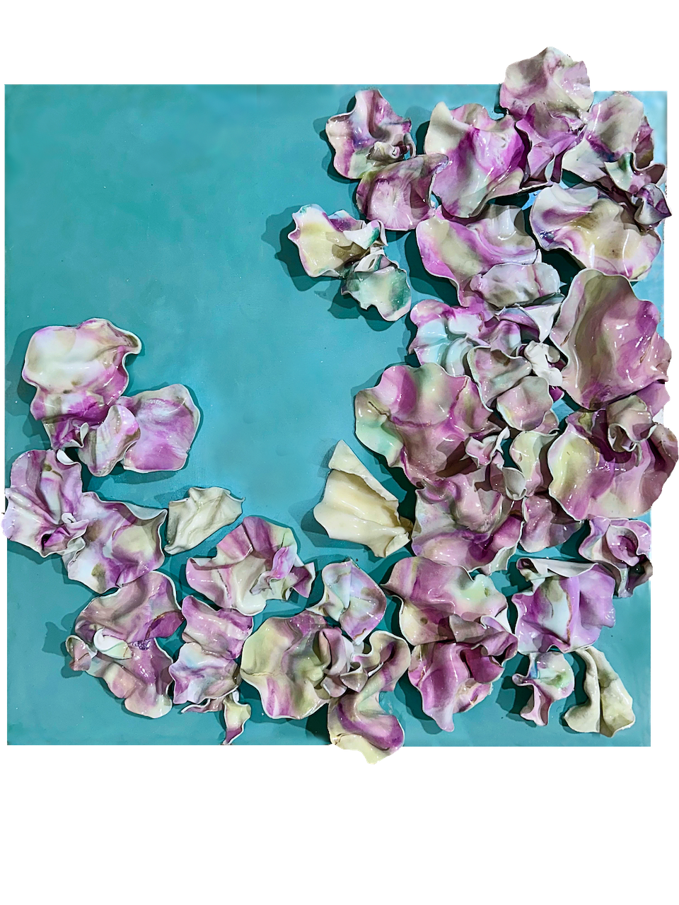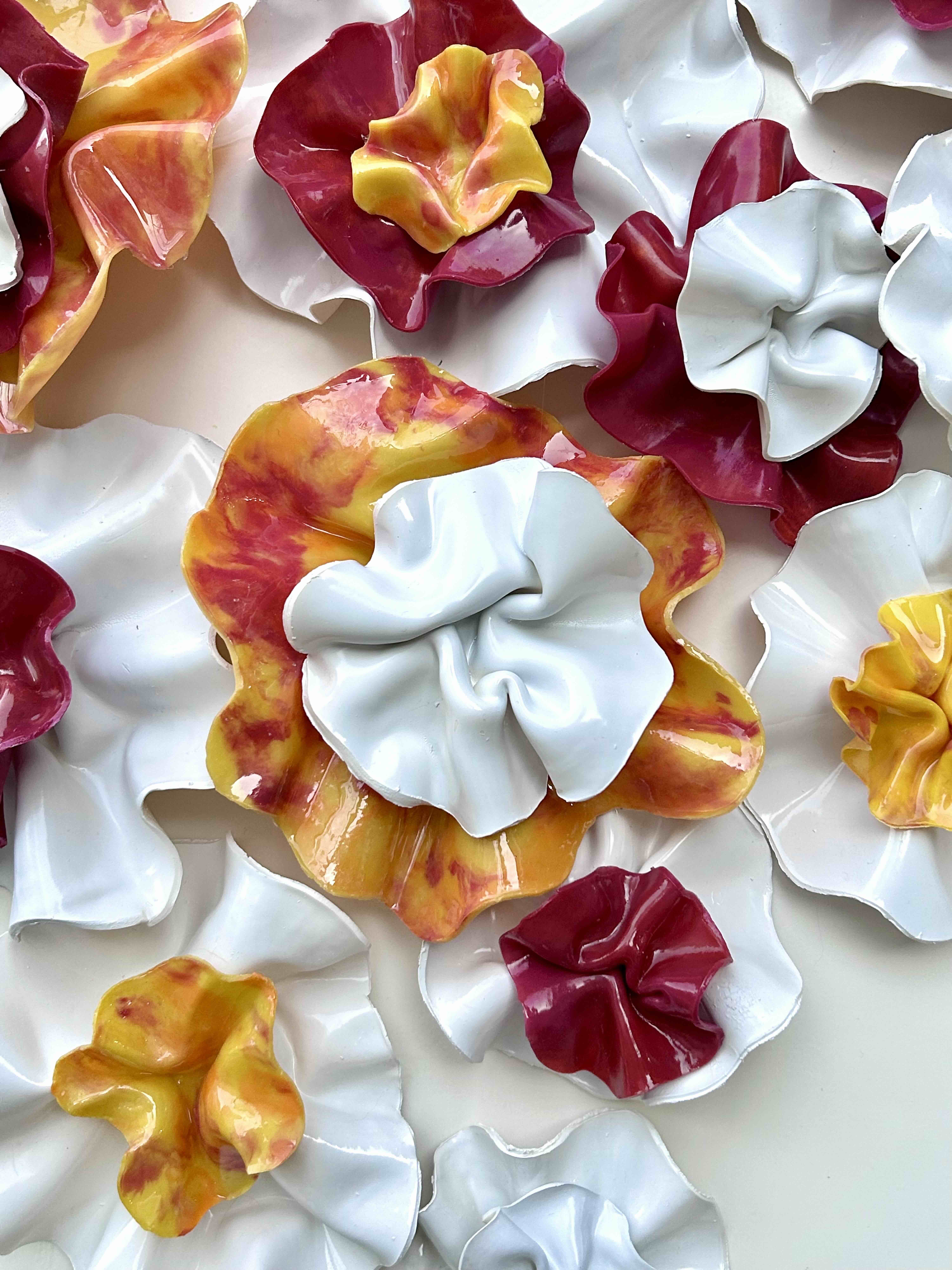 The fluidity and versatility inherent in encaustic painting enable me to delve into the complexities of organic forms, crafting textured surfaces and luminous depths that mirror the beauty and transience of the natural world. My work is characterized by meticulously hand-sculpted 3D forms that burst with vibrant colors, layered intricately throughout each composition.