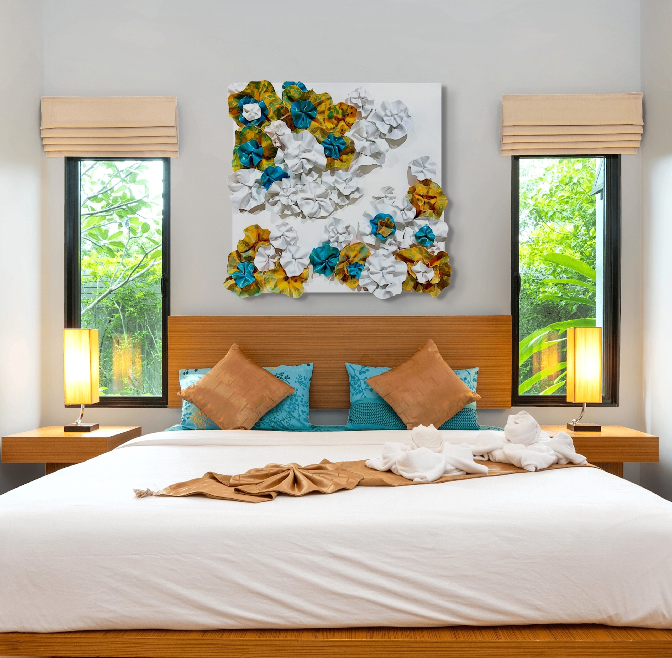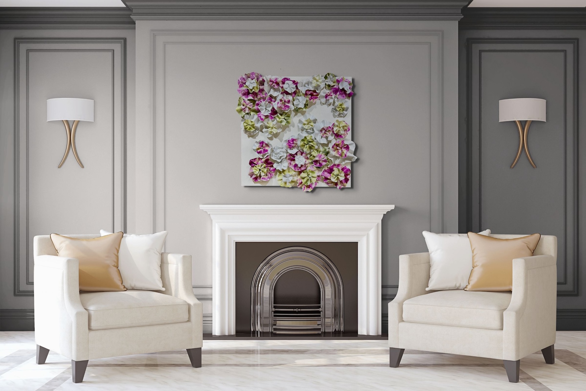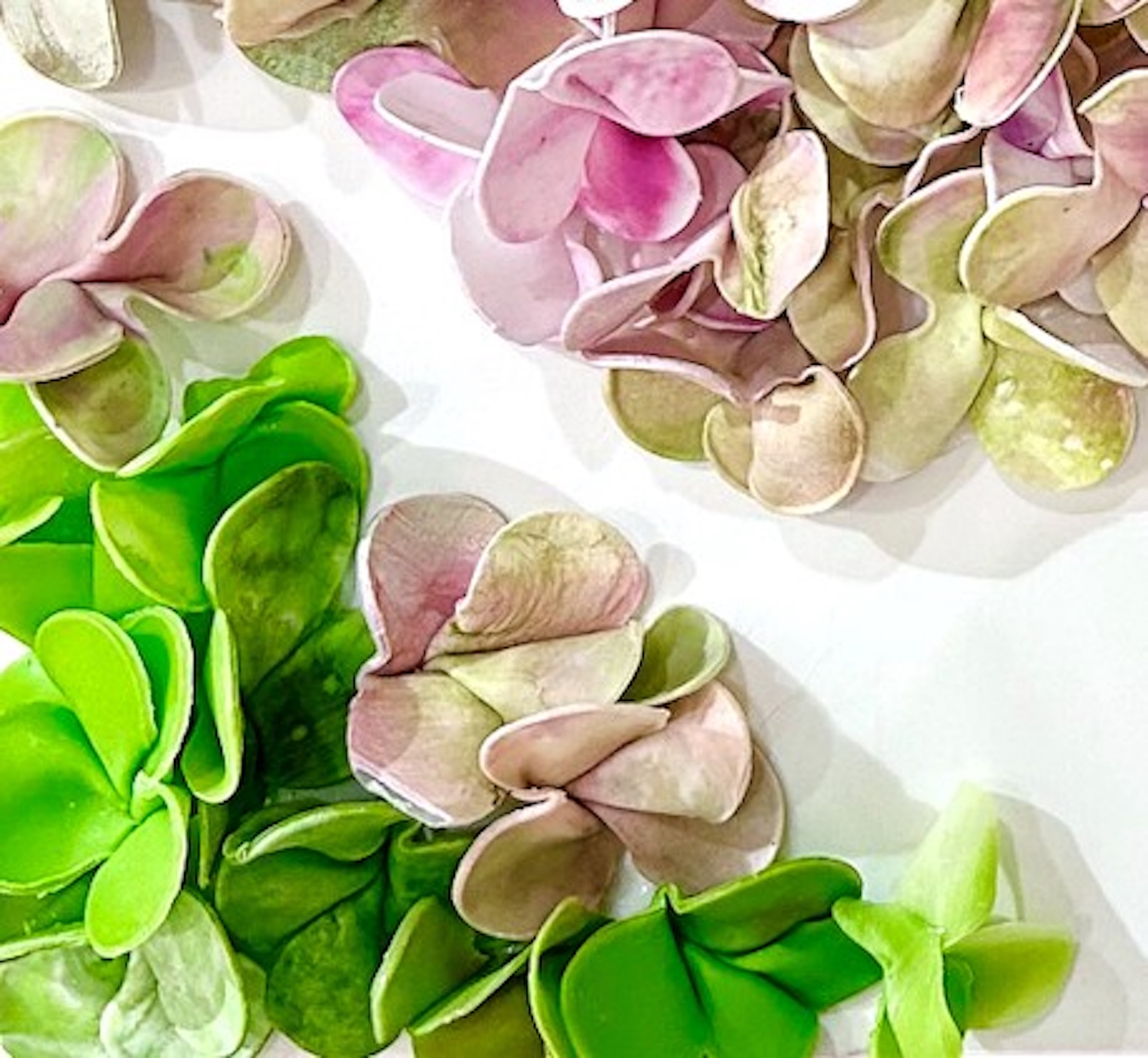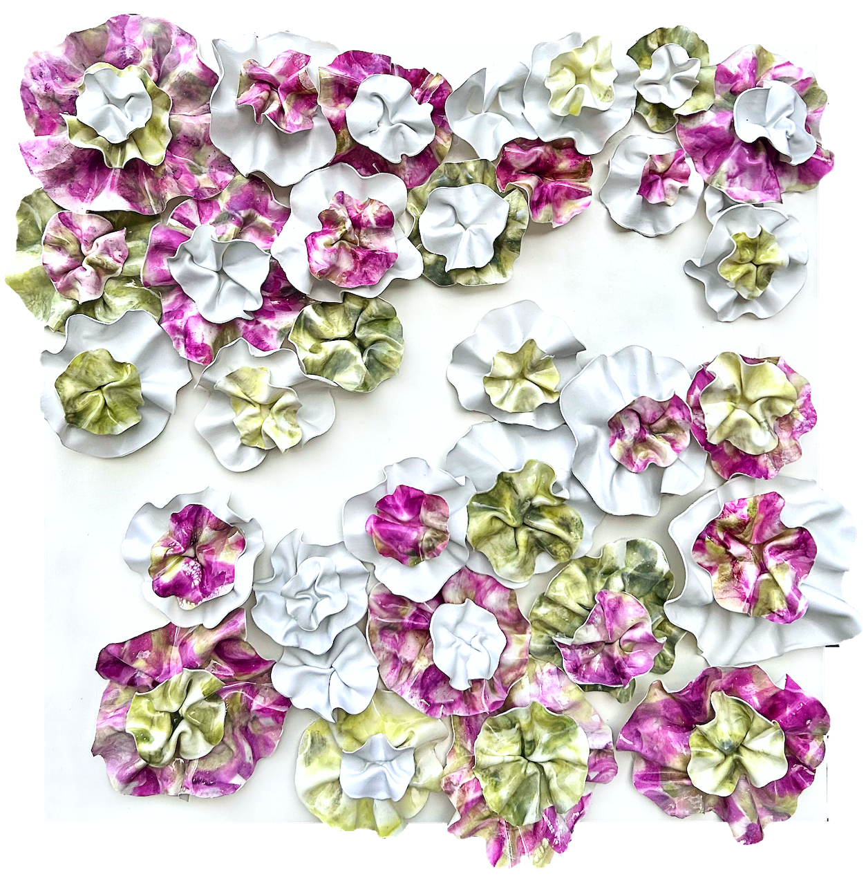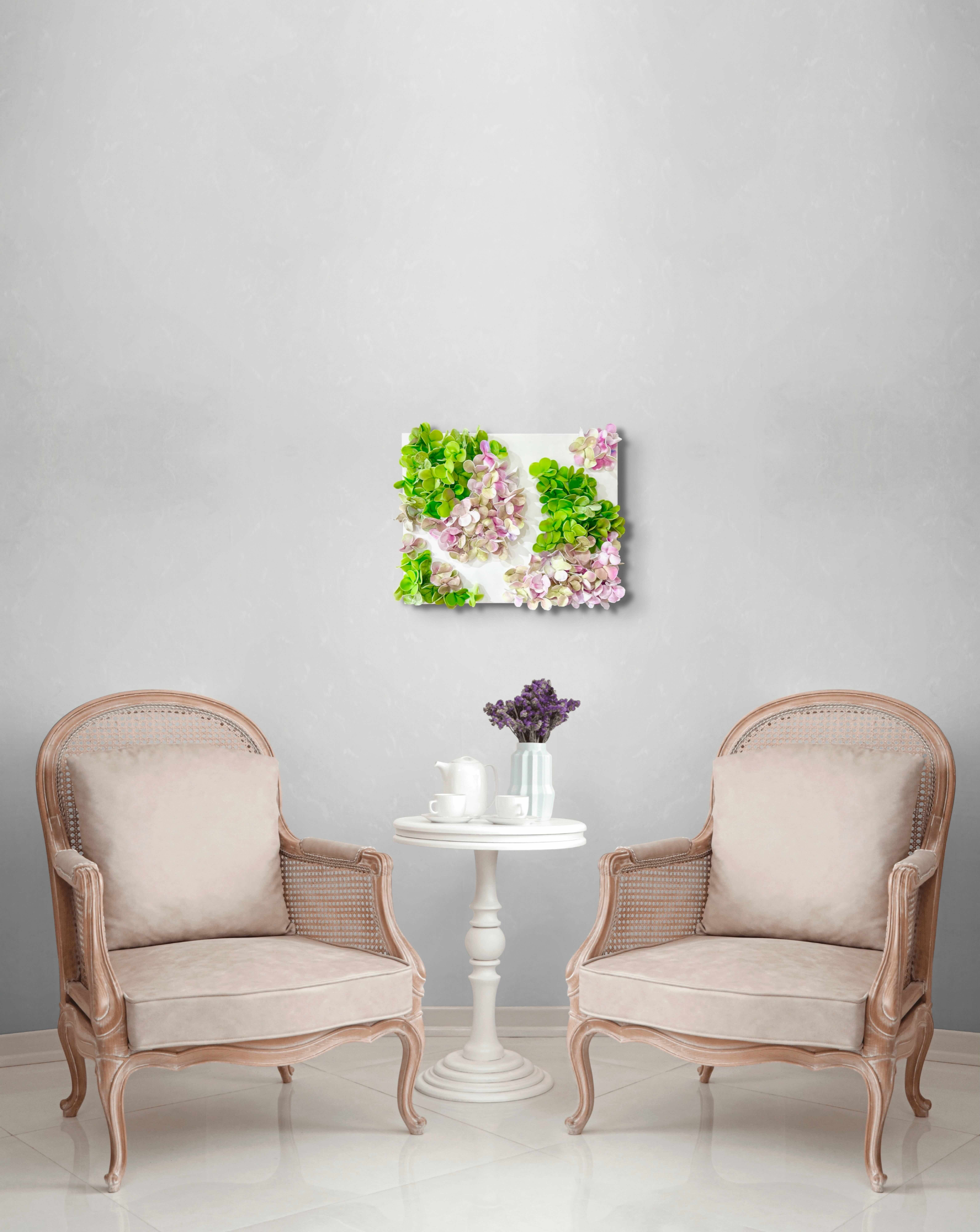 The fluidity and versatility inherent in encaustic painting enable me to delve into the complexities of organic forms, crafting textured surfaces and luminous depths that mirror the beauty and transience of the natural world. My work is characterized by meticulously hand-sculpted 3D forms that burst with vibrant colors, layered intricately throughout each composition.